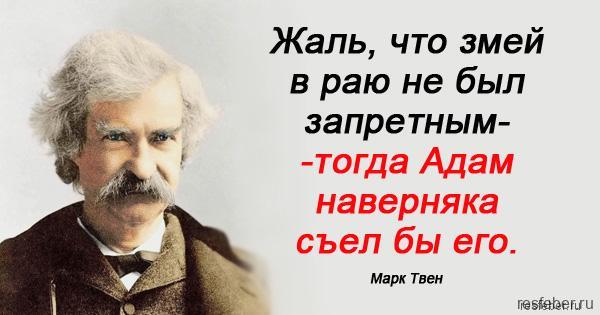 - Жаль, что змей в раю не был запретным — тогда Адам наверняка съел бы его.