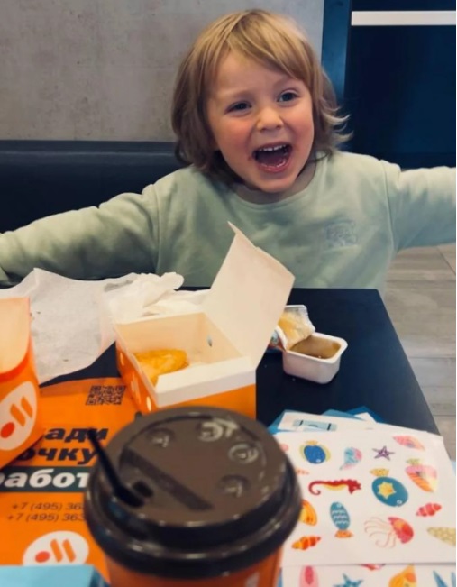 Далее Тодоренко опубликовала фото своего ребенка в соусе — родители накормили его нагетсами и напоили кофе.