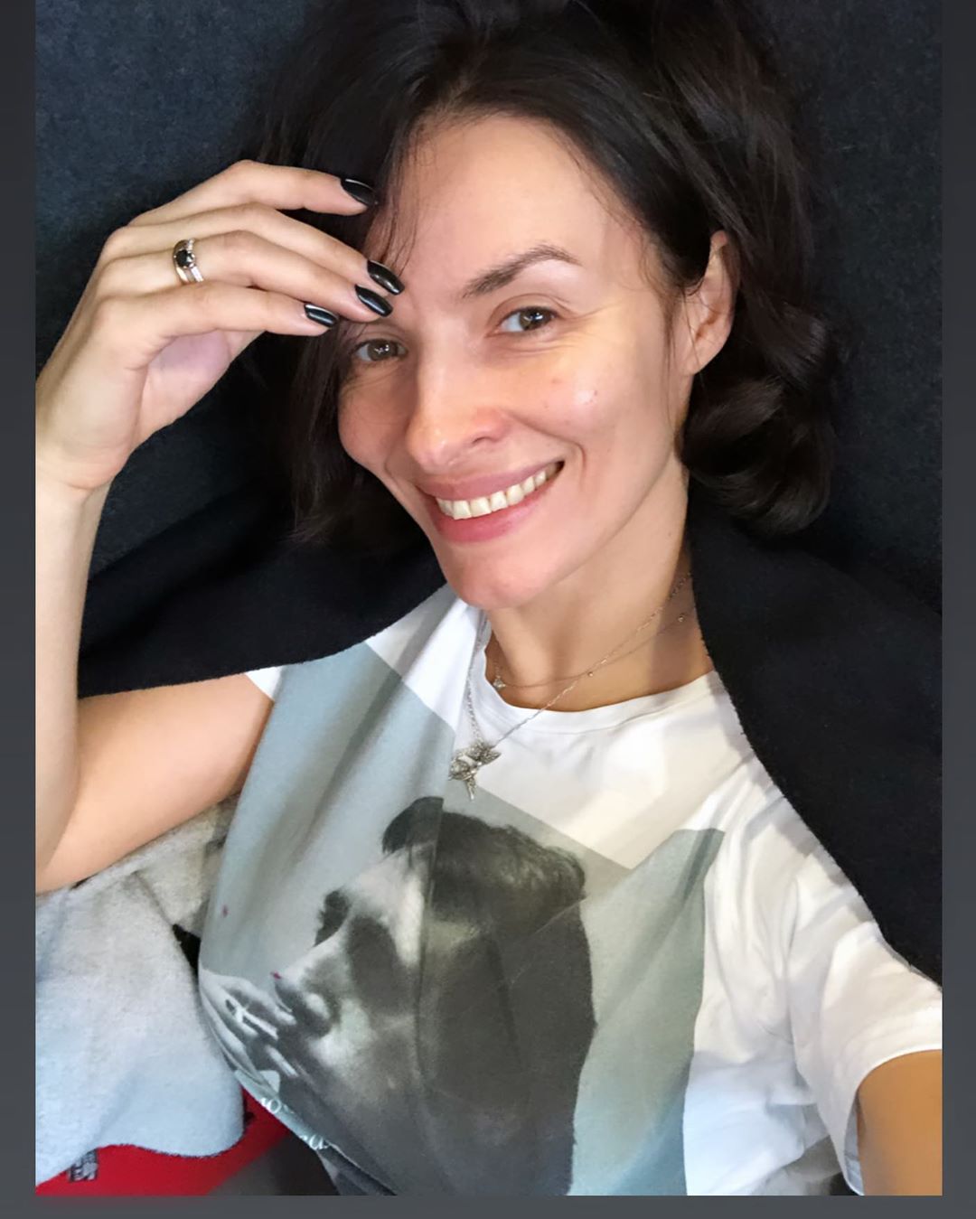 Тем временем сама 37-летняя отныне актриса показала фото из самолета без макияжа, чем тоже восхитила подписчиков.