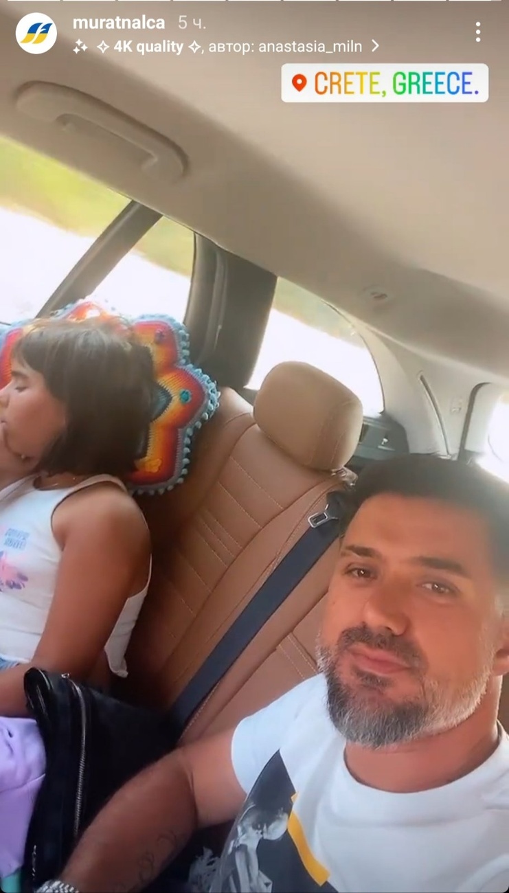 Спустя несколько часов Мурат загрузил ещё один снимок, на котором они с уставшей Софией уже ехали в автомобиле. Налчаджиоглу написал, что они прилетели в Грецию, однако не уточнил, куда именно.