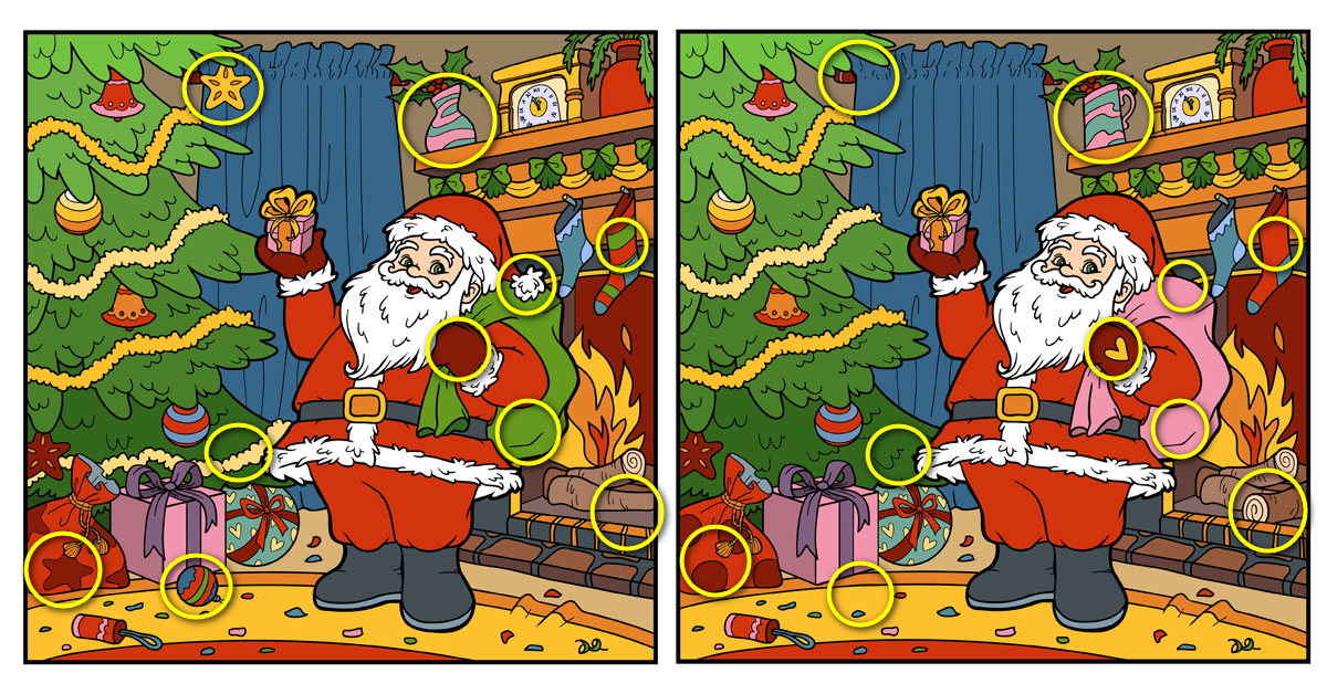 Правила до невозможного просты, и вы наверняка их знаете. Посмотрите на эти две идентичные, на первый взгляд, картинки, и найдите в них 10 отличий. Только сделать это нужно как можно быстрее, ведь у Санты еще полно дел!
