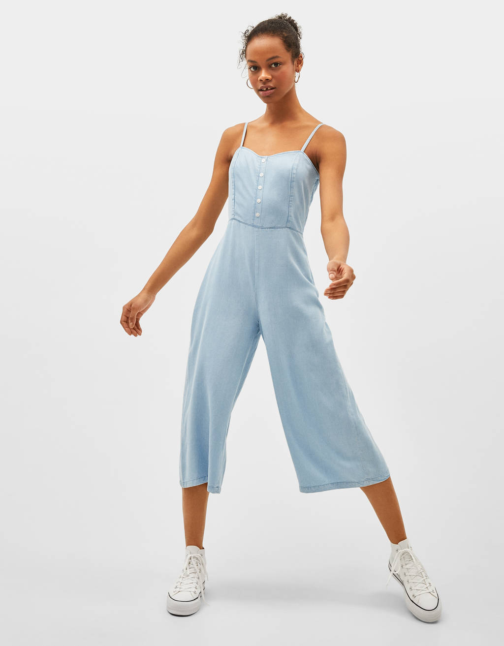 Что качается штанов в брючном ансамбле и комбинезонах – предпочтителен крой «дудочки» или же и вовсе – клеш. Также на пике моды кюлоты – укороченные штаны широкого покроя в свободном стиле.