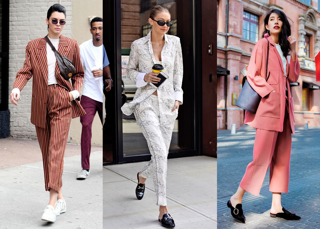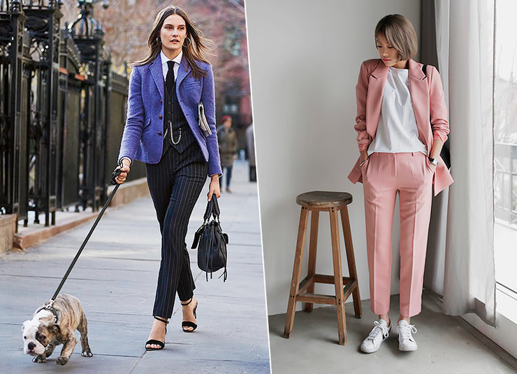 Современная мода невероятно демократична и, к счастью, учитывает наш динамичный темп жизни. На пике стиля сейчас опять – брючные костюмы и комбинезоны классического покроя. Однако в отличие от прошлых лет былой славы, теперь эти вещи наиболее выигрышно смотрятся со спортивной обувью. Смело сочетайте пиджак и штаны с кроссовками, слипонами или кедами. Таким образом, вы придадите своему образу непосредственности и очень стильной небрежности. К тому же, это очень удобно. Впрочем, классическая обувь на каблуке в сочетании с костюмом или комбинезоном тоже в почете, если нужно выглядеть элегантно и изысканно.