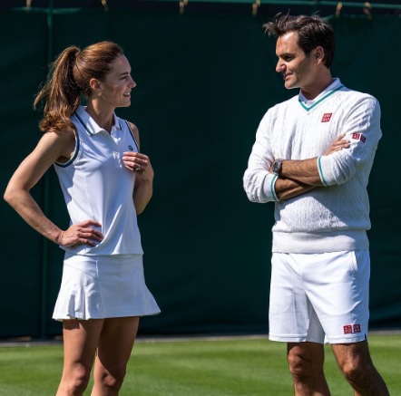 Компанию ей составил известный швейцарский теннисист и олимпийский призер Роджер Федерер. Сначала они вместе наблюдали за тренировкой болбоев (их функция — подавать теннисные мячи спорсменам на корт). Кейт и Роджер также познакомились ближе с молодыми спортсменами, а после — сыграли партию в теннис.
