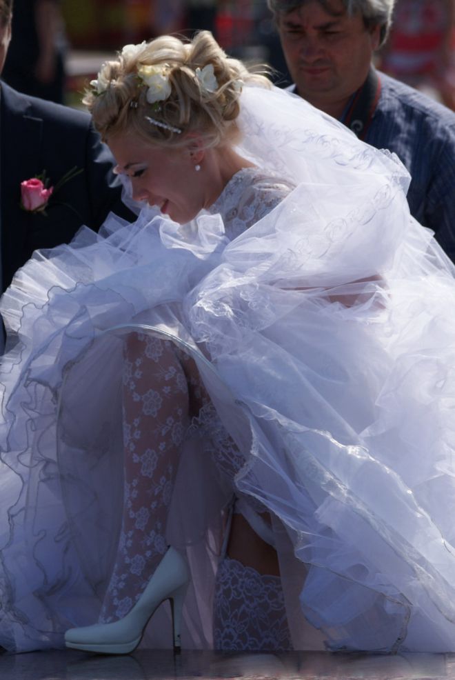 Свадьба- это самый ответственный день в жизни каждой девушки. И не удивительно, что этот день, как правило, проходит напряжённо и на нервах. Ведь в любой момент что-то может пойти не так, и идеальный день будет немного испорчен. Впрочем, не стоит бояться конфузов, ведь они случаются с каждым – твердит житейская мудрость. И мы с этим полностью согласны. А в доказательство этого оставляем в этой подборке 14 невест, которых подвело подвенечное платье в самый неожиданный момент. И ничего – зато остались яркие фотографии! Мэрилин Монро о них только мечтала со своим легендарным «ненарочно» приподнятым платьем.