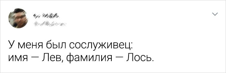 - Звонок на рабочий с неизвестного номера. Мужской голос в трубке: «Умер шеф» — и тут же переходит к каким-то рабочим вопросам. Резко просыпаюсь, пытаюсь догнать, о каком шефе речь. Переспрашиваю. Оказалось, это просто у него такая фамилия — Умершев. © Petrov1967 / Pikabu