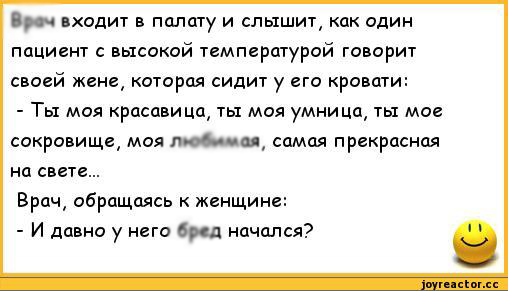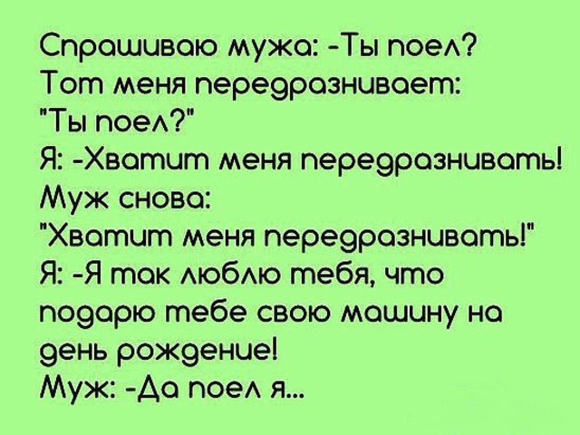 В жизни каждой пары есть конфликты и ссоры — и избежать их полностью нереально, пожалуй. Однако, свести к минимуму — очень даже возможно. А еще важно не допускать в мелких недопониманиях личных обид и нападок, и главное — избегать неприятных последствий. Но это получается не всегда… Вот у героев нашего первого анекдота — получилось так себе…