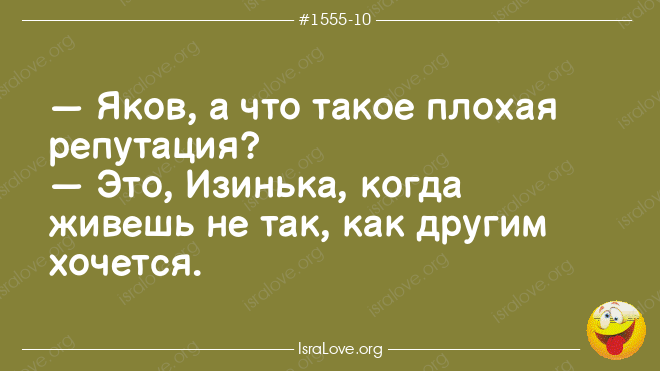 Два еврея заходят в бар и садятся за стойку. Один из них достает из кармана непонятный пузырек с жидкостью, открывает его и отпивает немного. Другой его спрашивает:
