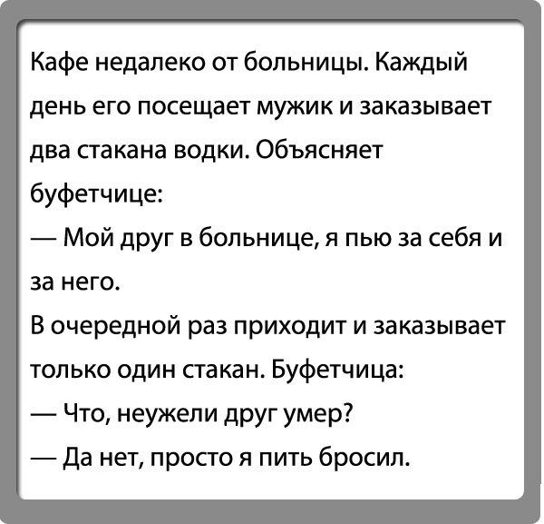 И один из поводов – это наши весёлые подборки юмора, которые мы регулярно для вас готовим. Они наполнены позитивом и жизнелюбием, а значит, это неиссякаемый источник положительных эмоций. И новый повод для веселья – уже перед вами.