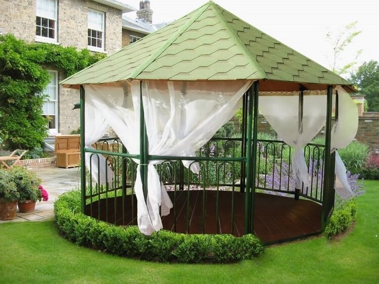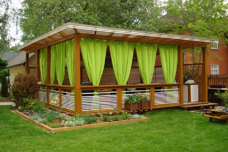 13. Открытая беседка с тканевыми шторами. Идеальное место для вечеринки в кругу друзей.