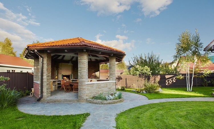 8. Беседка с камином. Деревянная крыша и каменный камин. Как приятно посидеть в таком месте вечером, слушая треск огня и наслаждаясь тишиной.