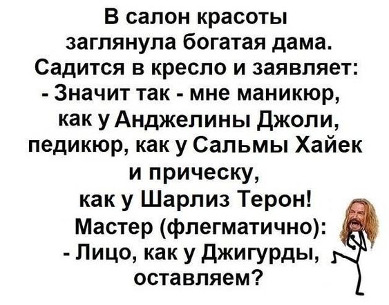 В понедельник принято с ностальгией вспоминать о прошедших выходных, с сожалением вздыхая быстро наступившему понедельнику. Но мы предлагаем вам совершенно другой сценарий. Так, вместо хандры и апатии предлагаем отдать предпочтение беспричинной радости и необъяснимому смеху. Ведь они – гораздо более перспективные спутники. Нужно просто найти повод для улыбки, а дальше дело пойдёт само собой. Тем более, что и повод особо искать не нужно – вот же он, перед вами. Предстал в виде 9 позитивных анекдотов. Читайте, вдохновляйтесь и веселитесь вопреки понедельнику и всем другим обстоятельствам!