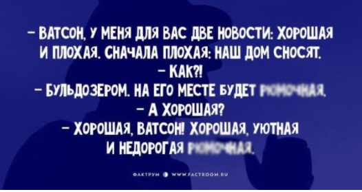 Ну а если начать хочется с малого, открывайте нашу свежую юмористическую подборку и начинайте прочтение наших анекдотов. Они наилучшим образом настраивают на позитивную волну. А дальше – больше: не поскупитесь поделиться позитивом с теми, кто в этом нуждается!