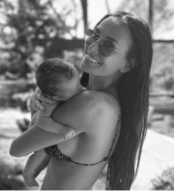 Своё первое совместное фото с внучкой Мур показала в День матери на своей странице в Инстаграм. Там она опубликовала серию снимков: Деми, Лу и Румер во время её родов, а также снимок Энни Лейбовиц, который фотограф сделала, когда сама Мур была беременна Румер.