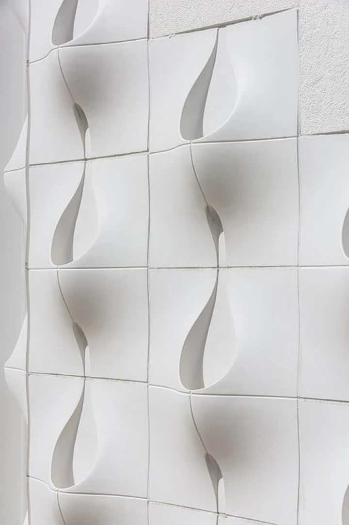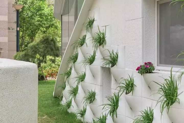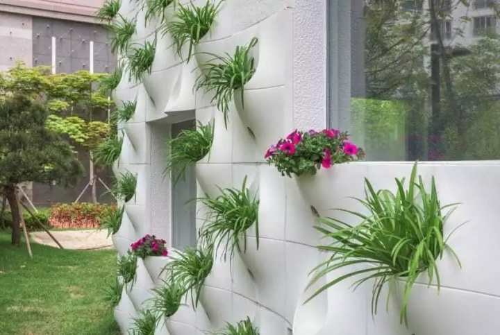 Панели изготовлены из армированного стекловолокна и крепятся прямо на стену дома. В структуре этих импровизированных цветочных горшков имеются отверстия для свободного дренажа.