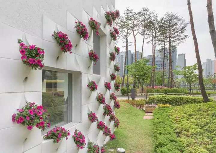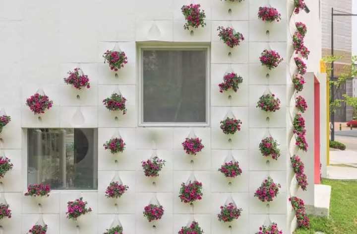 Панели изготовлены из армированного стекловолокна и крепятся прямо на стену дома. В структуре этих импровизированных цветочных горшков имеются отверстия для свободного дренажа.