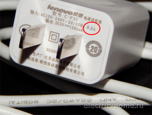 Для примера давайте подсчитаем, сколько потребляет моя зарядка от телефона Lenovo. Все технические характеристики указаны на корпусе.