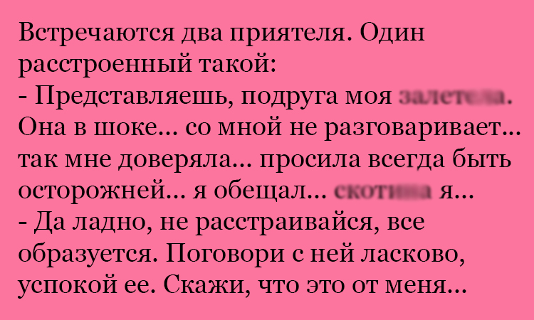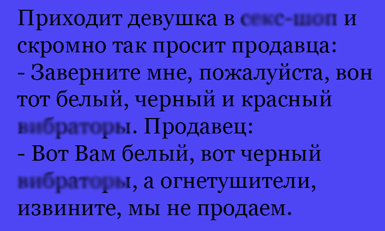 После полных работы, забот и хлопот последних дней, хочется чего-то яркого, остренького и запоминающегося, и мы решили немножко пошалить — собрали порцию откровенных и смелых анекдотов, которые без сомнений, развеселят всех и каждого. Так что приготовьтесь посмеяться от души и возможно немножко покраснеть. Но это не страшно — мы же взрослые люди, можем себе позволить немного «взрослого» юмора.