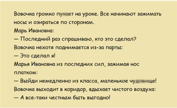 Среди всего разнообразия юмора ни один приличный, уважающий себя анекдот не обходится без Вовочки в главной роли. Вечно он что-то вытворяет, говорит или просто присутствует в самых дурацких, но одновременно и смешных ситуациях. Такие анекдоты – это тяжёлая артиллерия, после которой ваше настроение уже не будет прежним. Оно будет позитивным!