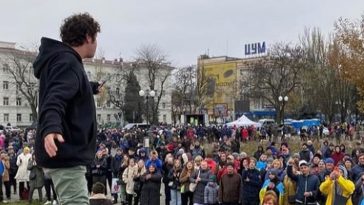«Дайте нам украинских песен»: известный певец спел жителям освобожденного Херсона прямо на центральной площади