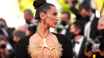 Грудь нараспашку и золотая цепь вместо бюстгальтера: Белла Хадид вышла в люди без верха