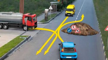 Из ряда вон выходящая ситуация: кому должен уступить дорогу синий автомобиль? Правильный ответ — в конце статьи