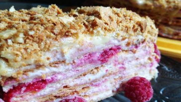 Малиновый «Наполеон» — легкий тортик на лето, который готовится в два счета