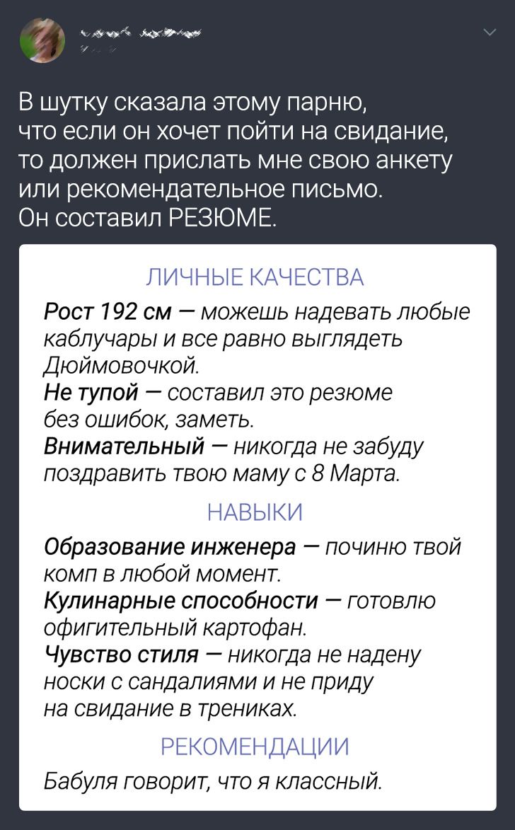- Знакомый парень все пытался начать встречаться со мной. Я отказывала — вежливо, но твердо. В конце концов стала более жесткой и сказала, что ему нужно уважать мои желания и прекратить попытки. А он в ответ: «А ведь можно уважать мои желания и все-таки начать встречаться!» © acnesnowwhite / Reddit