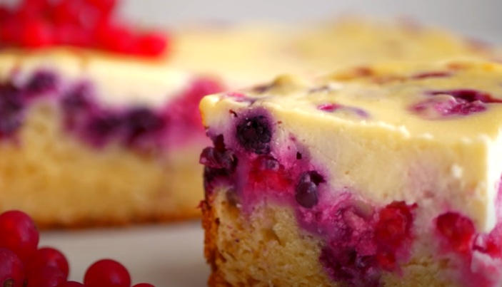 Простейший и очень вкусный творожный пирог с ягодами. Для начинки можно использовать разные ягоды и фрукты: вишни, смородину, малину, абрикосы, персики, землянику, ежевику, голубику, чернику и т.д.