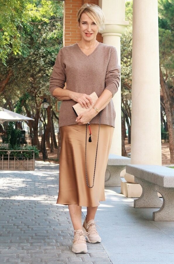 Этот тренд очень выгоден женщинам старшего возраста. Ведь в 50+ уже далеко не каждая женщина может носить туфли на высоких шпильках.