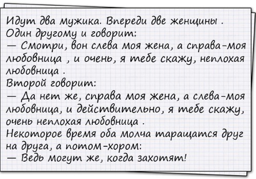 Наше хорошее настроение зависит в первую очередь только лишь от нас. Ведь именно мы решаем, как реагировать на ту или иную ситуацию, слово, поступок. Рекомендуем вам не воспринимать всё близко к сердцу, быть легче и жизнерадостнее. Тогда хорошие события к вам потянутся одно за другим. И тогда мир заиграет новыми красками, а люди станут чаще вам улыбаться. Главное – сделайте первый шаг навстречу позитиву: прочтите нашу веселую подборочку анекдотов. И тогда ваше настроение обязательно станет лучше!