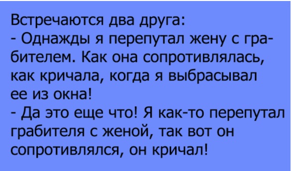 Начинает четверг на позитиве и с весёлым блеском в глазах. И даже если вы не выспались, а подушка и тёплое одеяло не отпускают на работу, с этим можно с лёгкостью побороться. И главное оружие в этом утреннем сражении за бодрость – это хорошие анекдоты. Такие, как в нашей первой подборке четверга. Они непременно помогут вам проснуться и привести в порядок настроение.