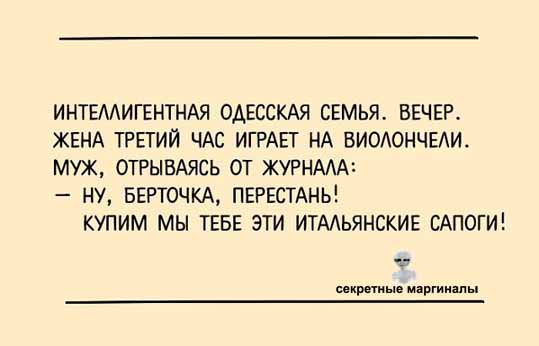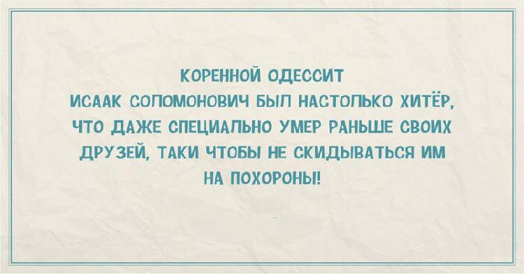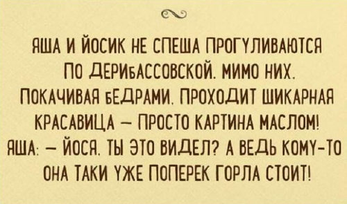 Вряд ли найдется много людей, которые не любят Одессу и одесский народ. Ведь эта жемчужина у моря подарила нам всем столько позитива, столько шуток-прибауток, что их можно читать бесконечно. Вот и сегодня к вам дошел морской привет из столицы юмора. Для вас готова новая подборка анекдотов с чисто одесским акцентом. Каждый из них такой, как вы любите – искрометный, актуальный, злободневный и немного саркастичный.