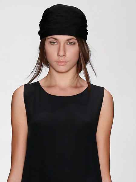 Эта прическа – помощь тем, у кого имеется челка. Прямая, косая и любая другая. Нужно уложить челку с помощью бигуди/расчески-брашинг/фена, придавая ей объем, затем убрать все остальные волосы под головной убор, а на улице оставить лишь красиво уложенную челку.