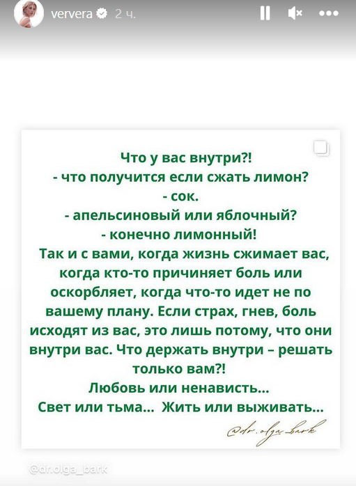 В тексте, который репостнула Брежнева, она сравнивает себя с выжитым лимоном.
