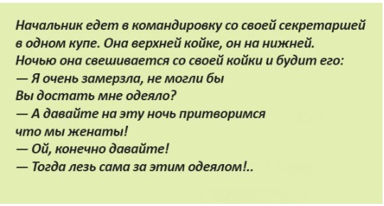 Здесь вы найдёте исключительно весёлые, лёгкие, позитивные анекдоты, которые ни к чему не обязывают. Обо всём и ни о чём. То, что нужно для хорошего настроения и жизнерадостных мыслей.