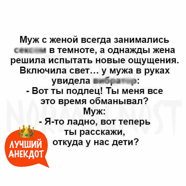 Порой бывает, что люди знают о том, что их обманывают, но при этом делают вид, что и не подозревают об этом. Вот и герои нашего первого анекдота, супружеская пара с многолетним стажем, были не слишком честными друг с другом, пока обман не стал уж слишком очевидным…