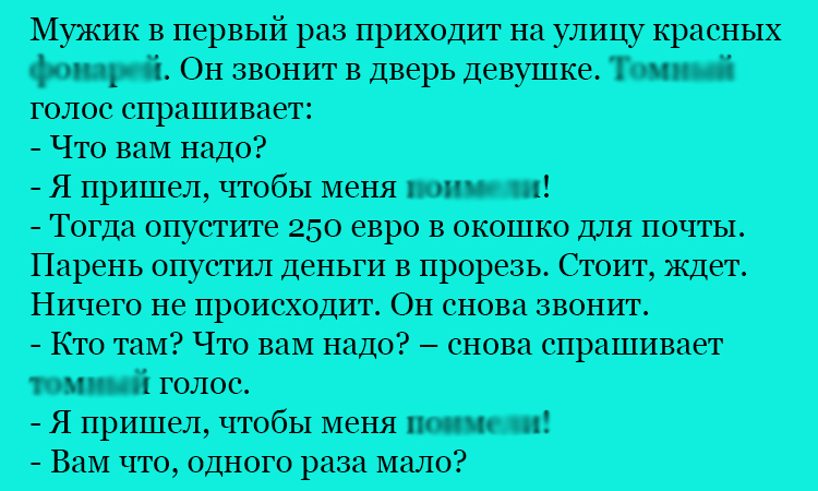 Свои пожелания надо формулировать точно, конкретно и недвузначно, а то они вдруг могут сбыться, но совсем не так, как мы себе это представляли… Именно такое случилось с героем нашего первого анекдота, которые отправился на пресловутую Улицу красных фонарей за приключениями… и их получают!
