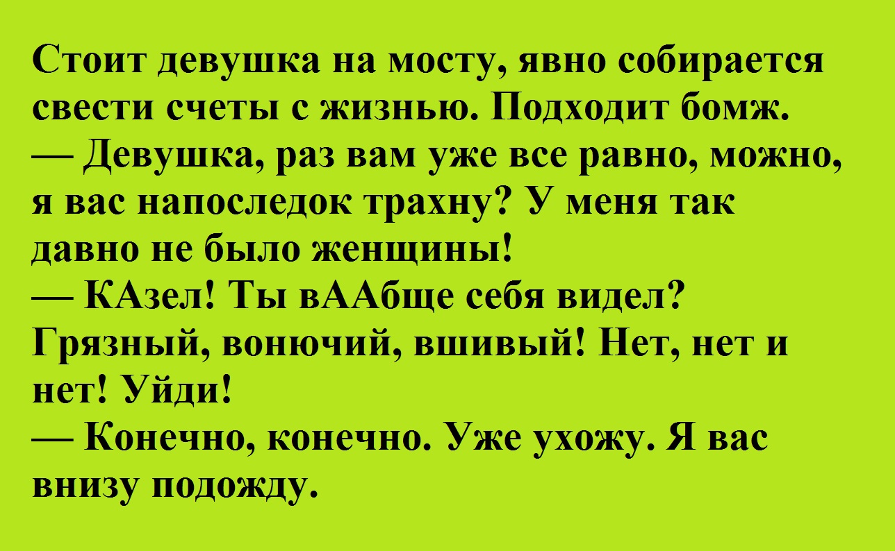 В наших подборках вы не найдёте случайных шуток. Здесь только зе бест оф зе бест – со всего простора сети. Именно поэтому наши подборки так хороши для создания и поддержания настроения. Ведь каждая шутка здесь – особенная. А значит, и эффект у неё соответствующий.
