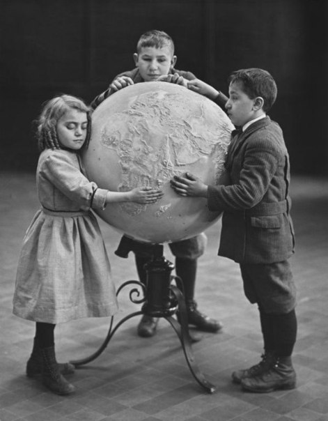 Слепые дети изучают специальный рельефный глобус, 1914 г.