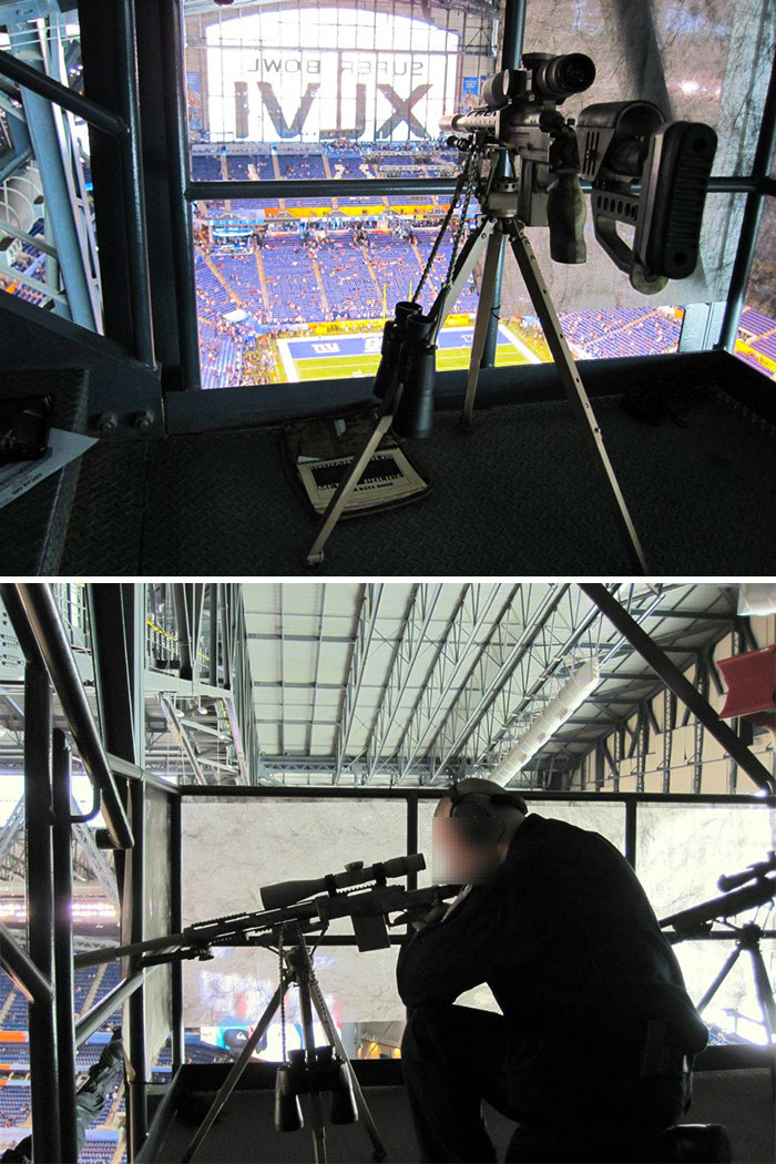 15) На фото — снайперская позиция подразделения армии США, которая обеспечивает безопасность на Супер Кубке по американскому футболу.