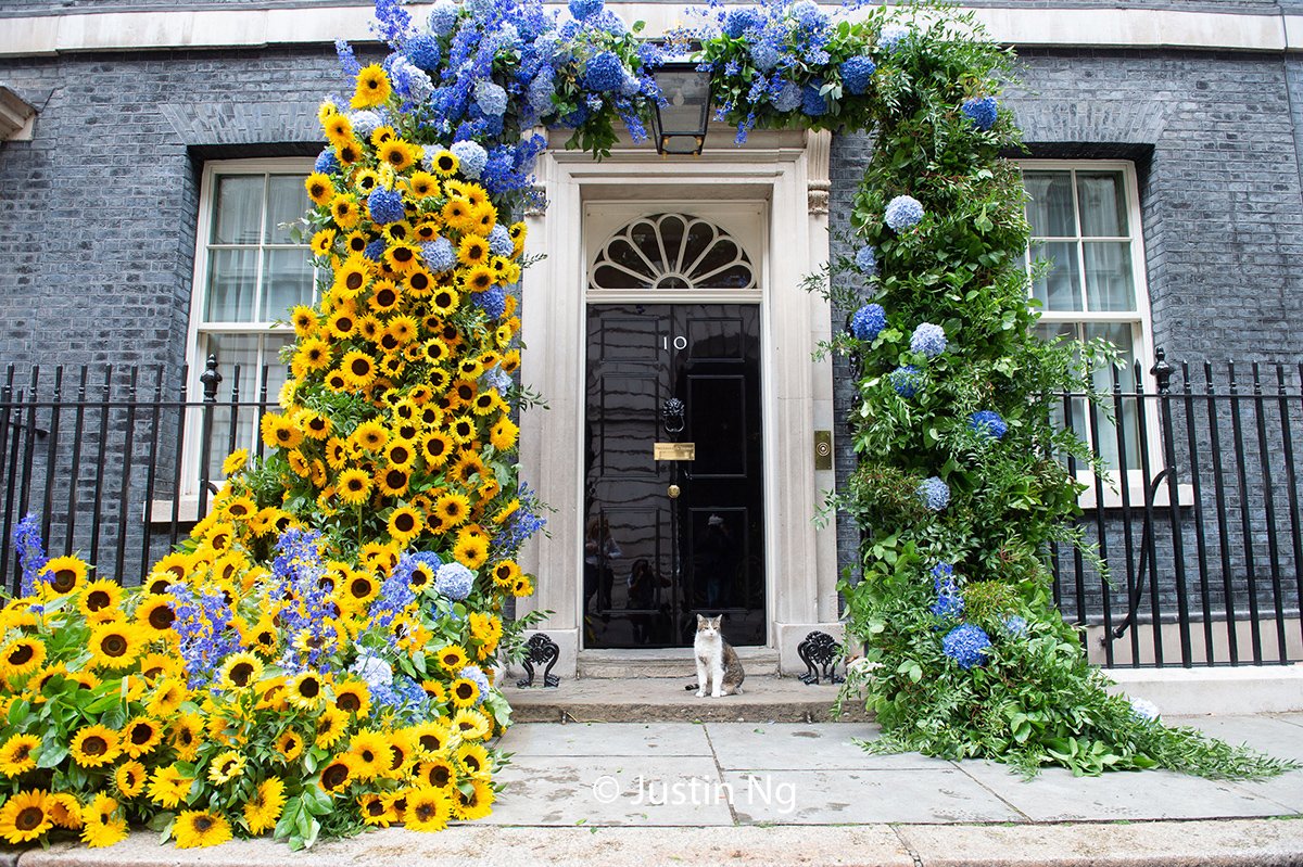 Ко Дню государственного флага и Дню Независимости Украины резиденцию премьера в Великобритании на Даунинг-стрит, 10 в Лондоне декорировали особенным образом.