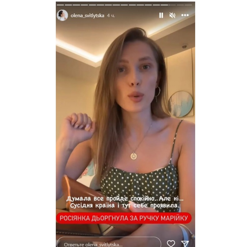 По словам Свитлицкой, история случилась в лифте отеля, куда в последний момент вбежала неуравновешенная россиянка. Когда дочка Свитлицкой потянулась нажать кнопку лифта, представительница страны-тeppopucта резко схватила ребенка за руку и оттолкнула в сторону.