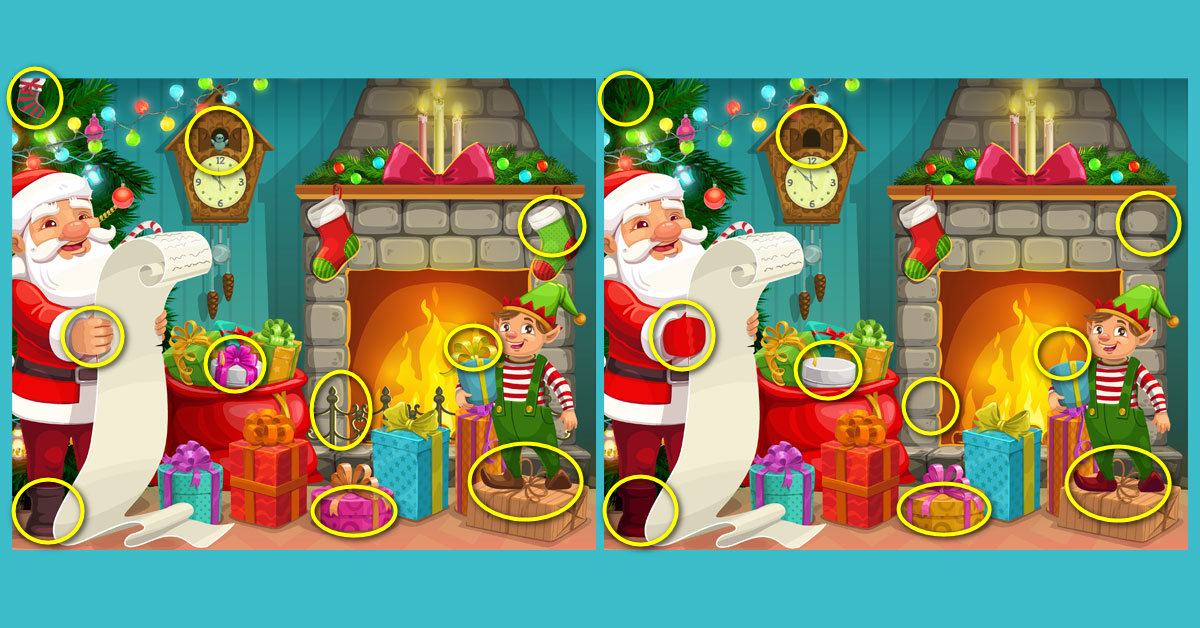 Чтобы найти все отличия с Сантой и не пропустить ни единой детали, нам необходимо в первую очередь внимательно взглянуть на обе картинки. Ведь, как нетрудно догадаться, таким образом ты просканируешь изображения и явно обратишь внимание на некоторые несоответствия. А ведь это явный ключ к успеху.
