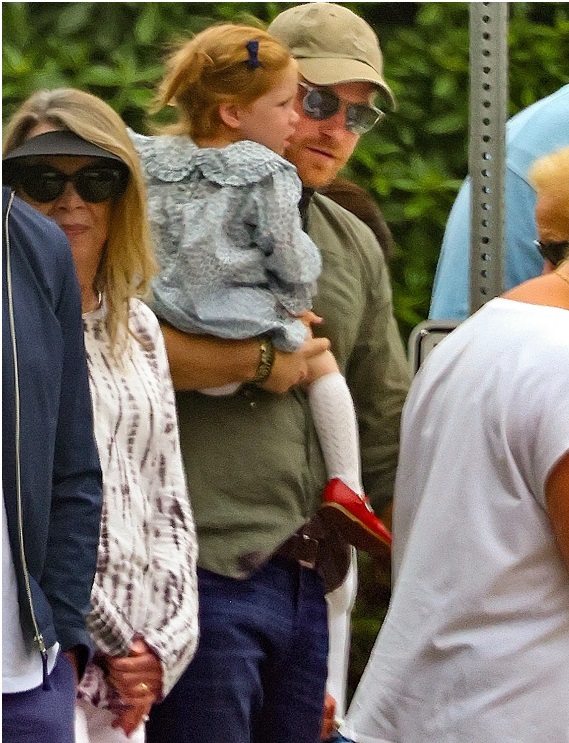 Опальный герцог был небрежно одеть в джинсы, бейсболку и зеленую рубашку. На руках он держал свою младшую дочь — принцессу Лилибет.