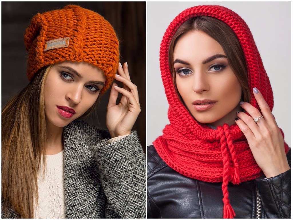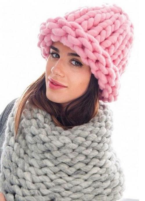 Особо модными для зимы-2019 считаются объемные вязанные шапки, шапки-снуды и шапки, напоминающие по форме лопату. При этом, уже совсем не обязательно, чтобы шарф был под цвет шапки. Что касается цвета самой шапки, она может быть как ярких, так и приглушенных оттенков, однотонная или с использованием техники меланж.