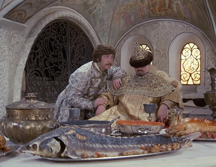 После того как вернулось и взбунтовалось войско, предположившее, что царь ненастоящий, в царской трапезной произошла драка. На столах было множество посуды и закусок — воистину царское изобилие.