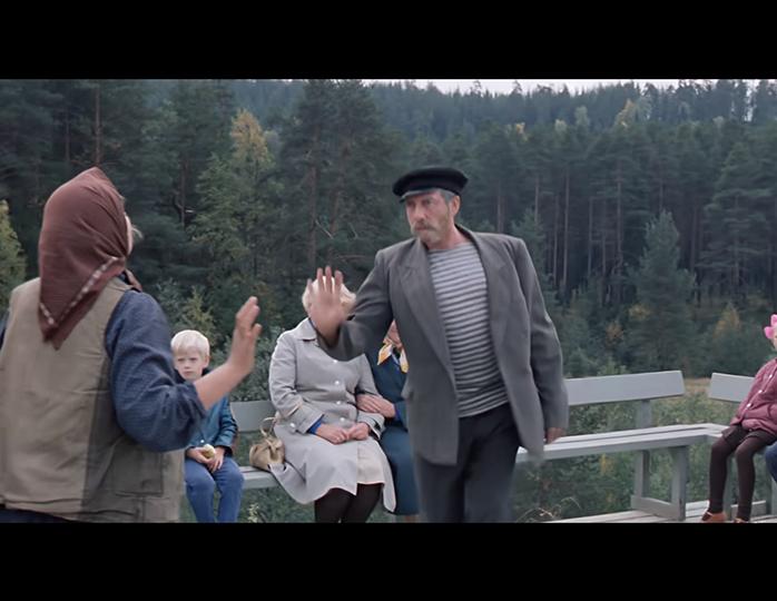 Но когда дядя Митя спрыгивает вниз, на лавочках удивительным образом оказываются совсем другие люди в совершенно других местах. Но кто на это обращает внимание, когда все переживают за дядю Митю?