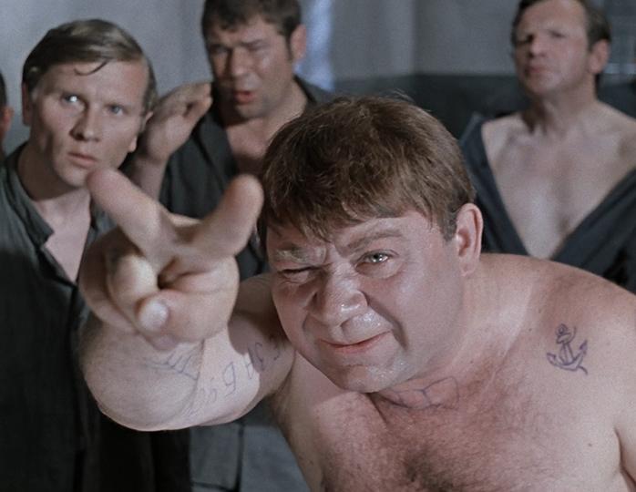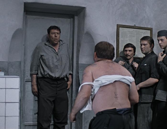 16-я минута фильма, сцена, где детсадовскому воспитателю впервые приходится знакомиться с криминальным миром, перевоплотившись в головореза. Герою Леонова приходится дать отпор бандиту по кличке Никола Питерский.