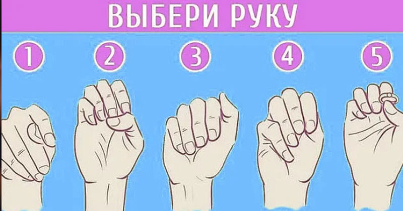 Один из таких тестов на личность мы предлагаем вам пройти сейчас. Перед вами 5 различных положений пальцев. Вам нужно выбрать картинку, которая наиболее всего приглянулась. Только выбирать нужно не задумываясь, чтобы подключить подсознание.